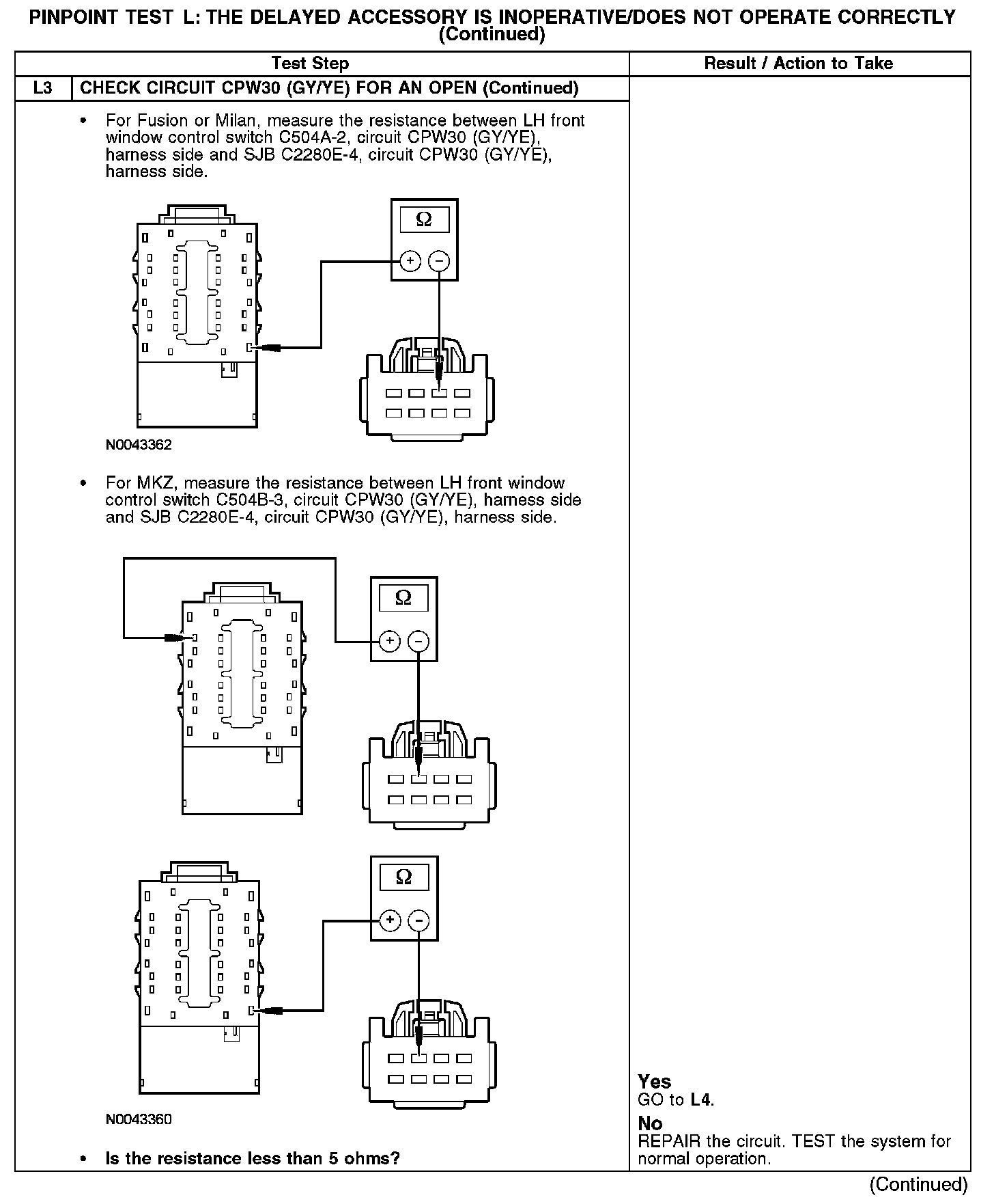 PINPOINT TEST L: THE DELAYED ACCESSORY IS INOPERATIVE/DOES NOT OPERATE CORRECTLYL1-L3: