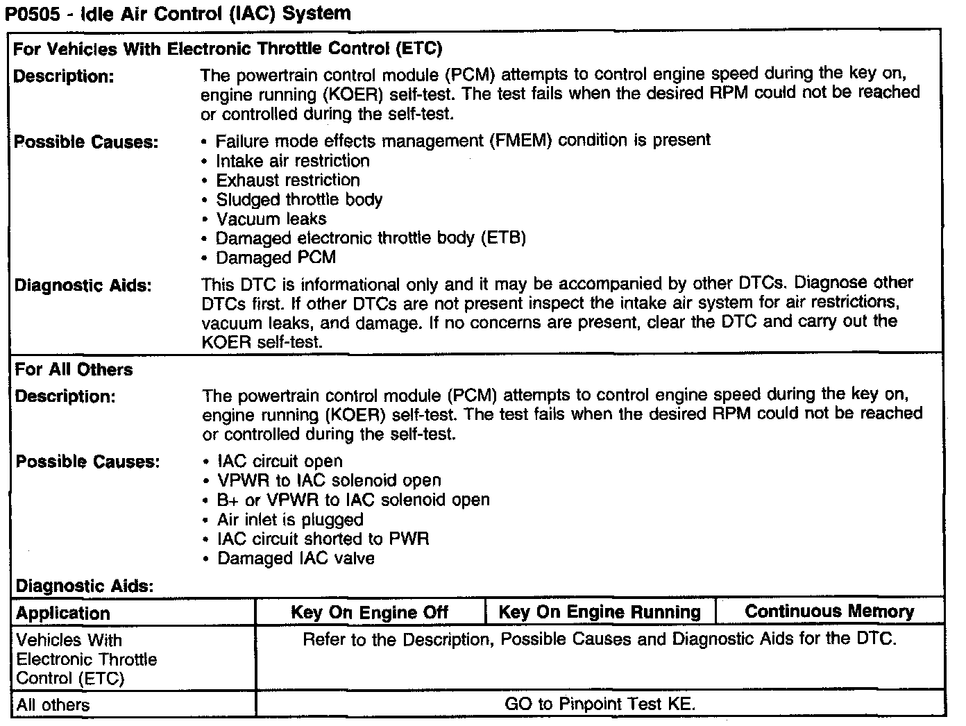 P0505 - Idle Air Control (IAC) System: