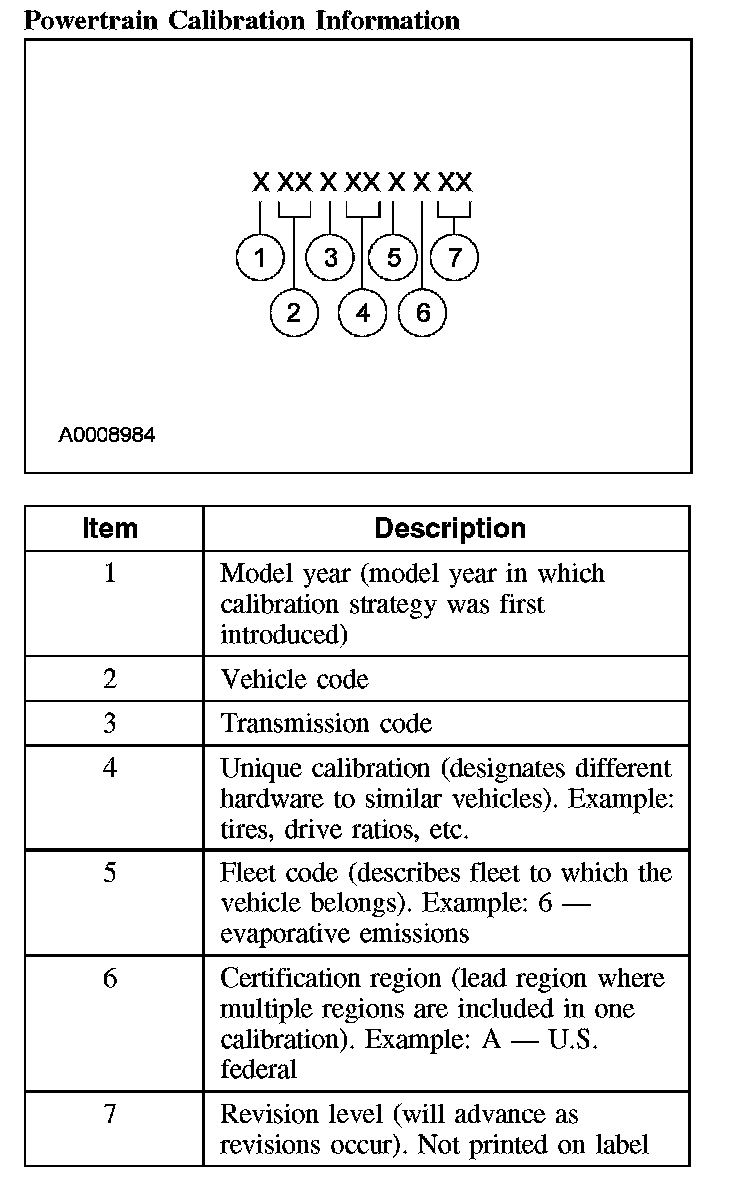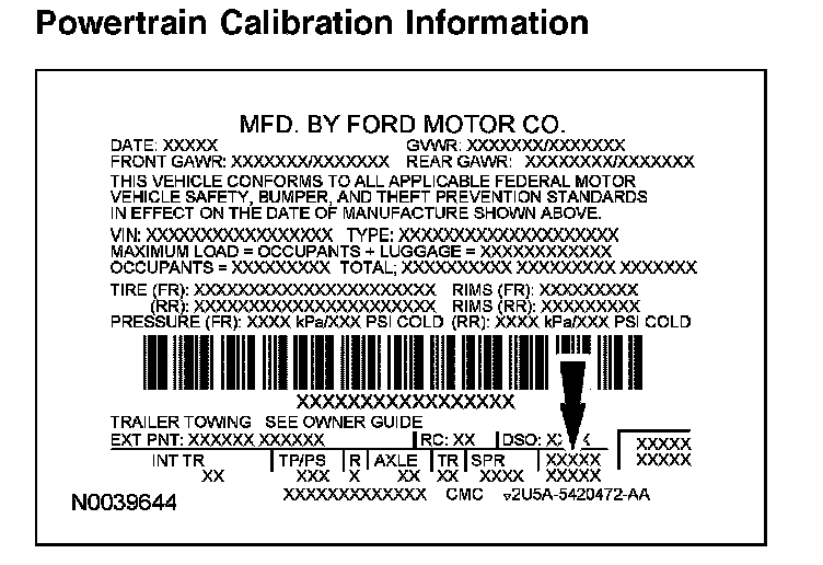 Powertrain calibration information is printed in the lower right corner of the vehicle certification (VC) label. Only base calibration information is printed. Revision levels will not appear, however, they can be found in On Line Automotive Service Information System (OASIS).