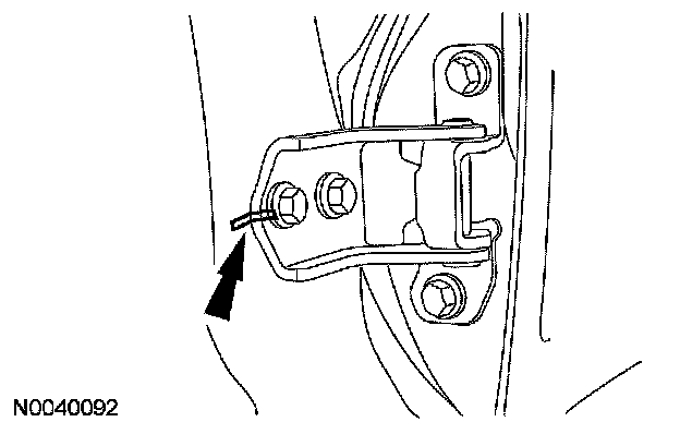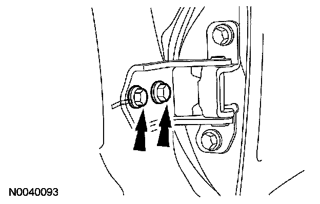 7. Tighten the 2 front door lower hinge-to-body bolts.