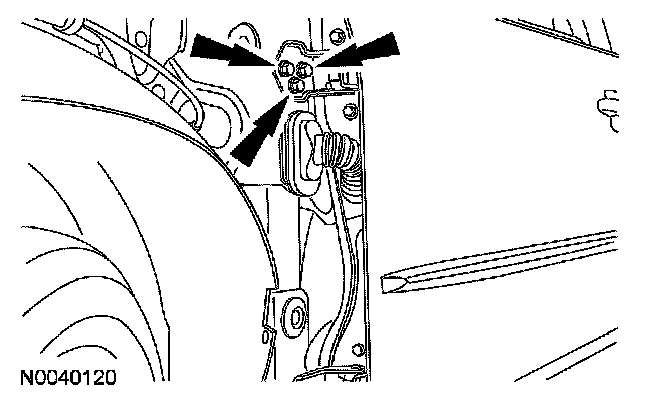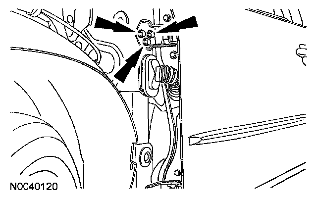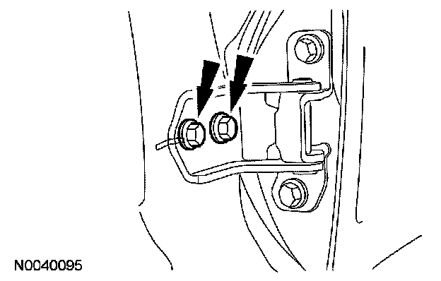 3. Loosen the 2 front door lower hinge-to-body bolts just enough to permit movement.