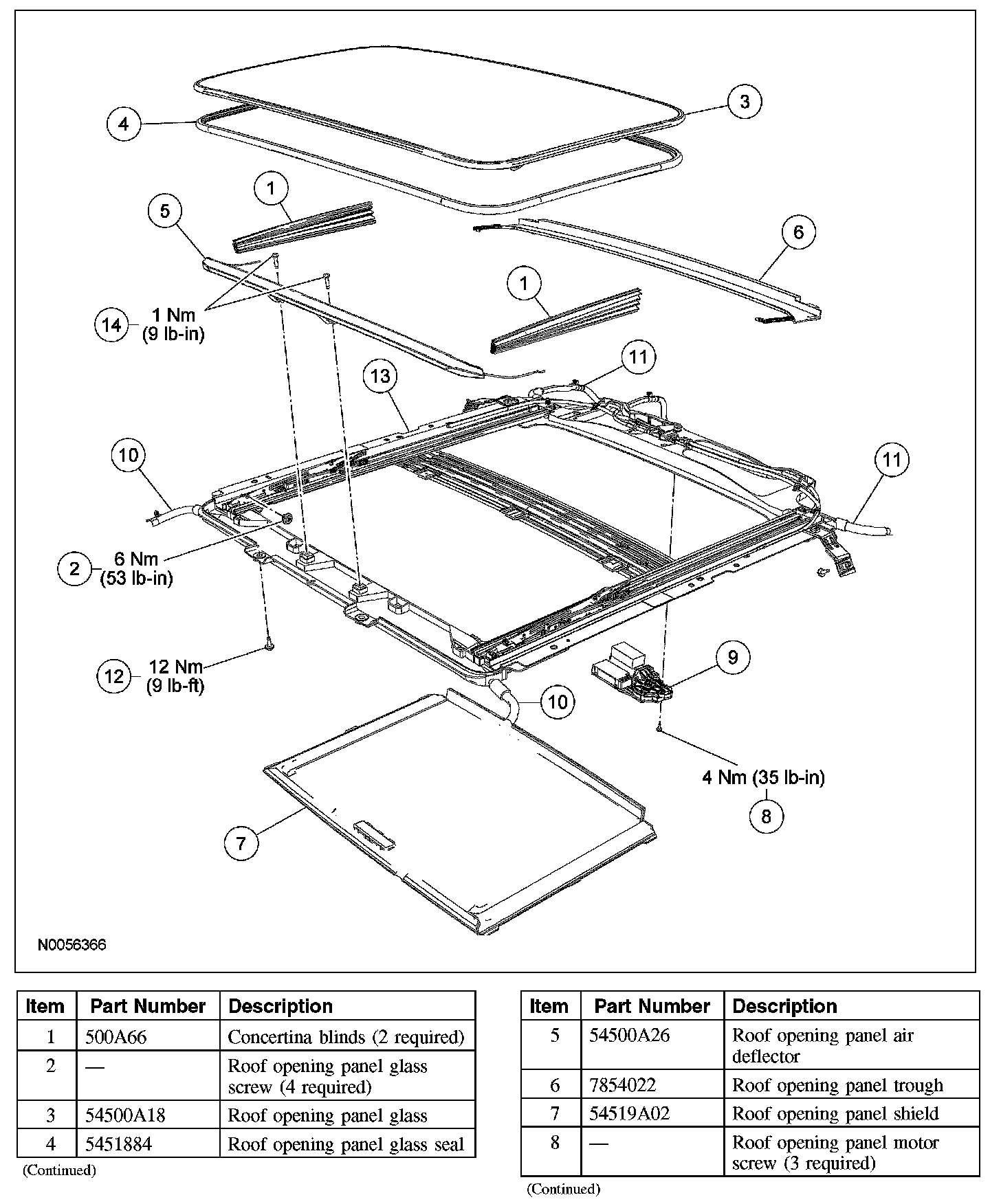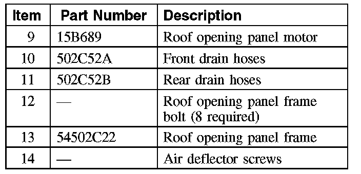 4. Remove the 8 roof opening panel frame bolts and remove the roof opening panel frame.