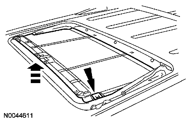 3. Slide the roof opening panel shield forward halfway.