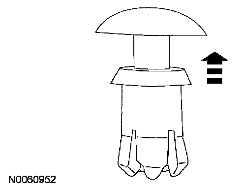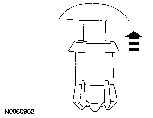 9. Pull the head of the LH recliner outboard cover retainer up to release, then remove the retainer.