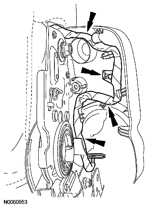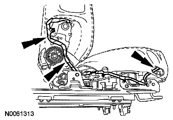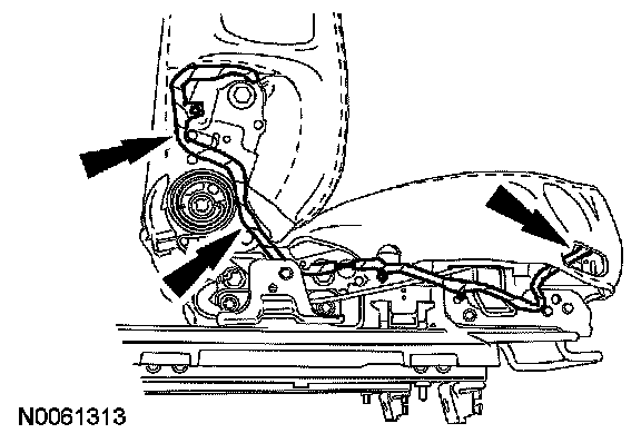 - If equipped, route the heated seat wire harness to the LH recliner outboard cover.