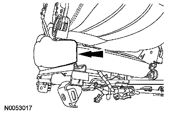 1. Remove the front seat and depower the supplemental restraint system (SRS).