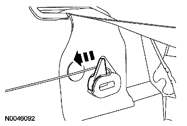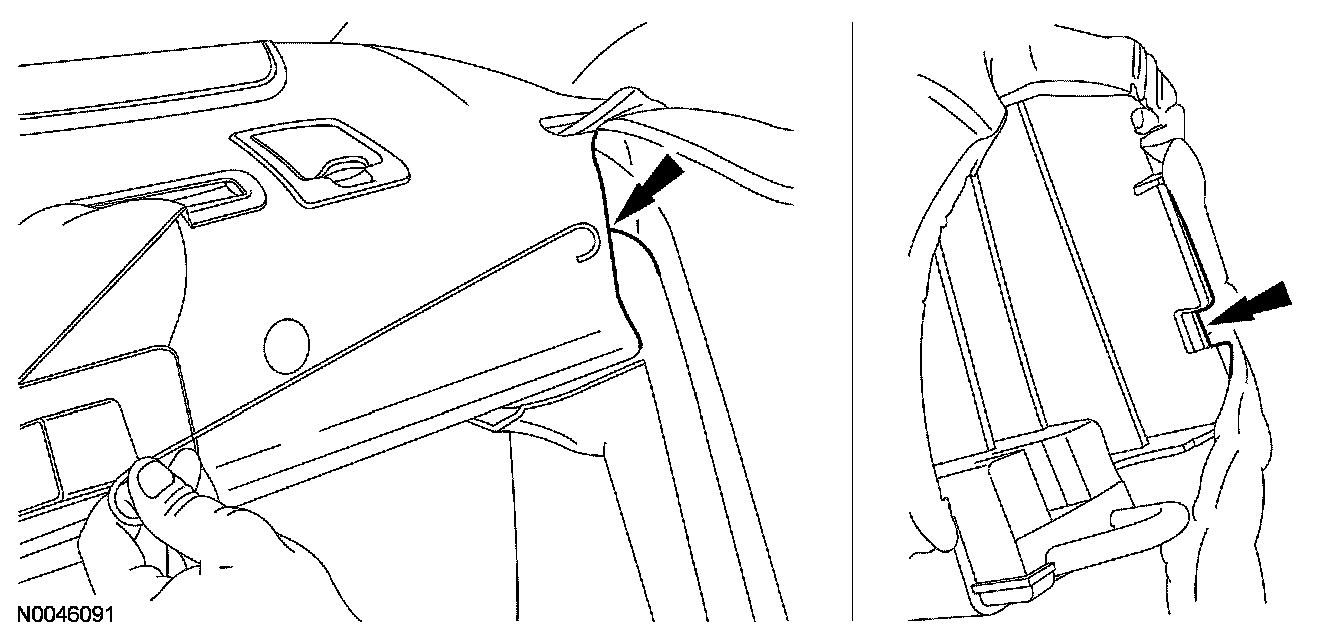 - The latch release tabs are accessible through a small service notch located on the rear inboard edge of each side bolster (behind the bolster trim cover sew seam).