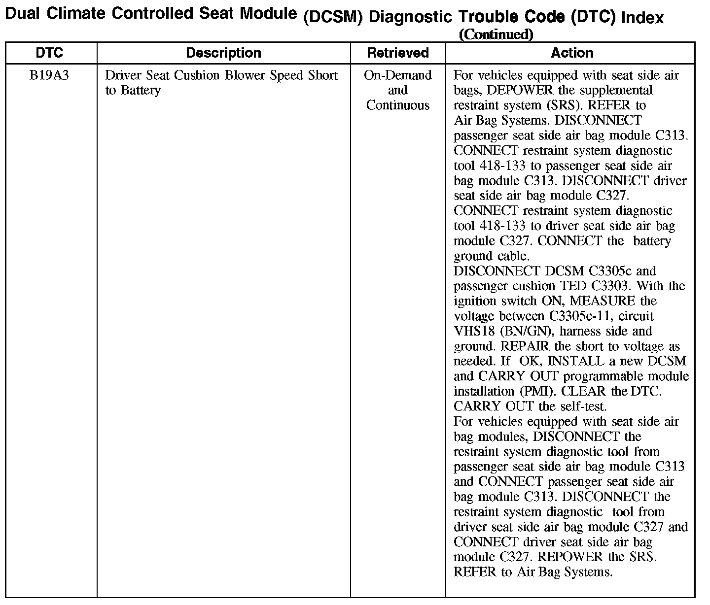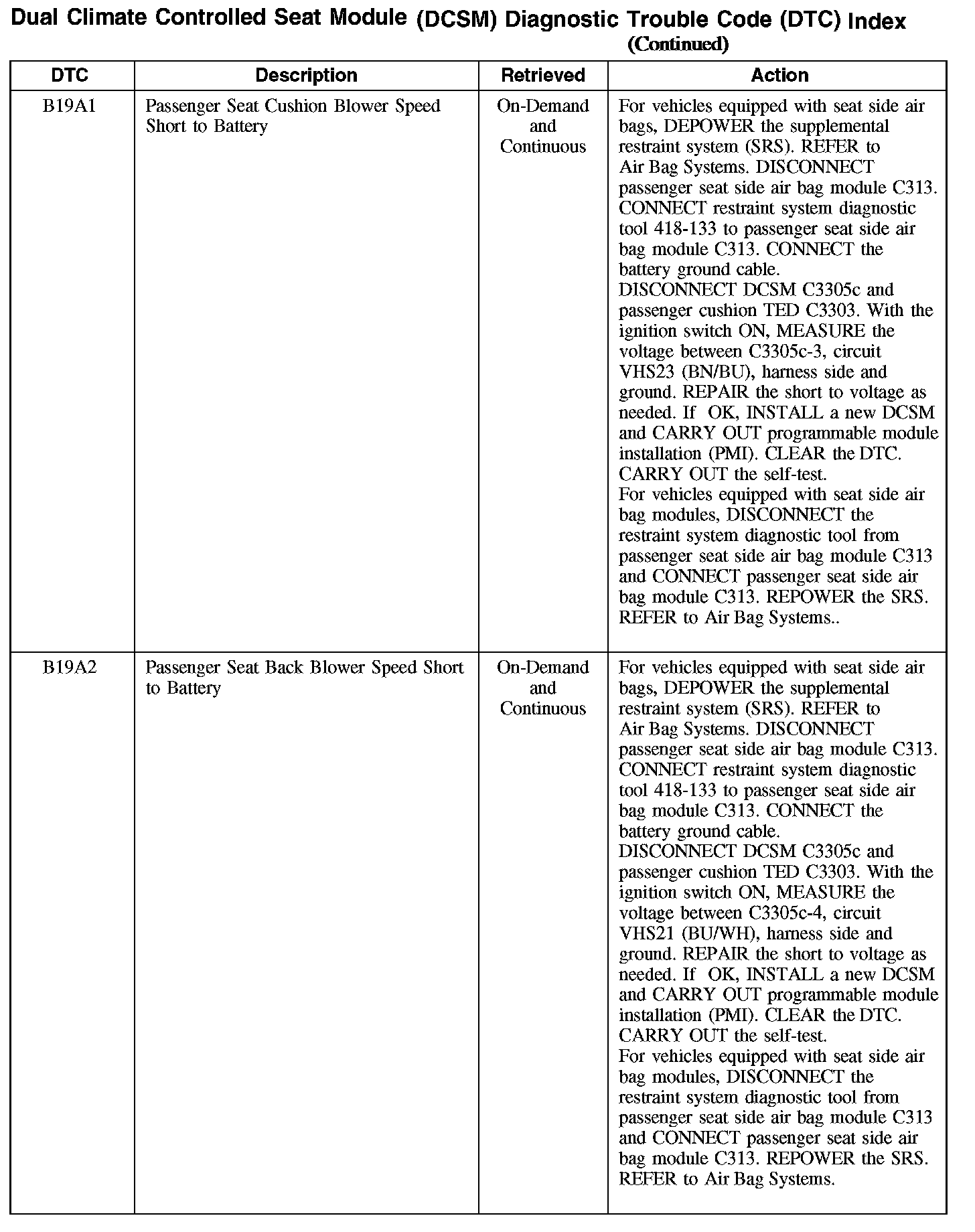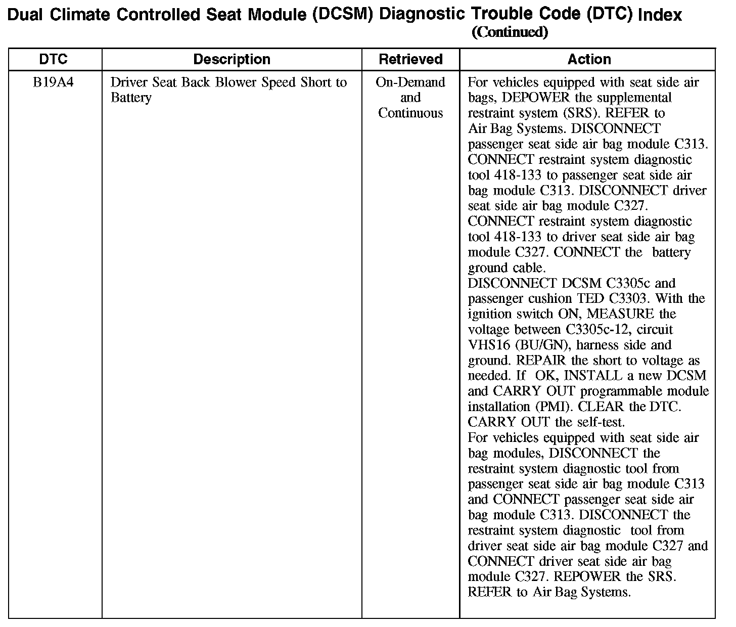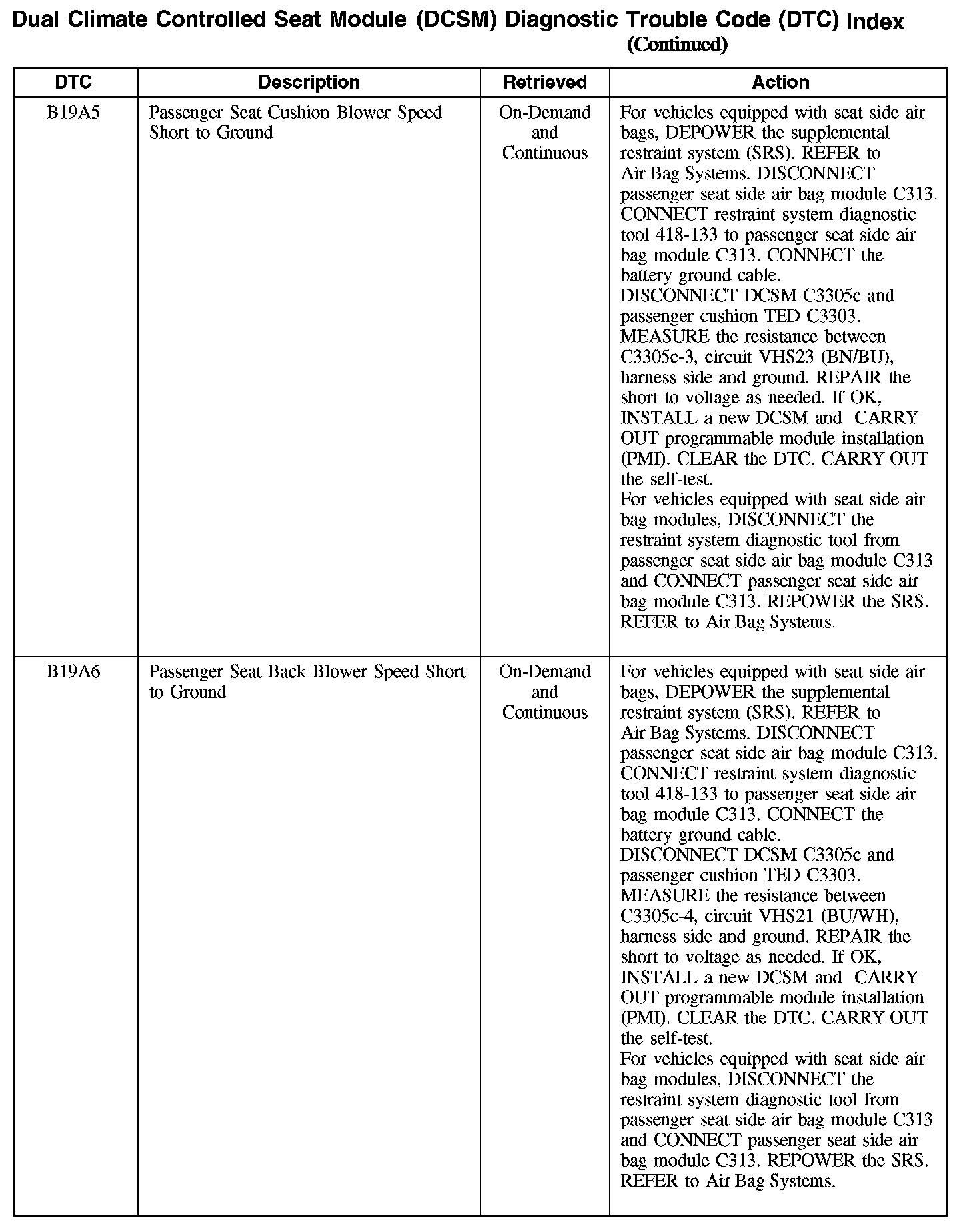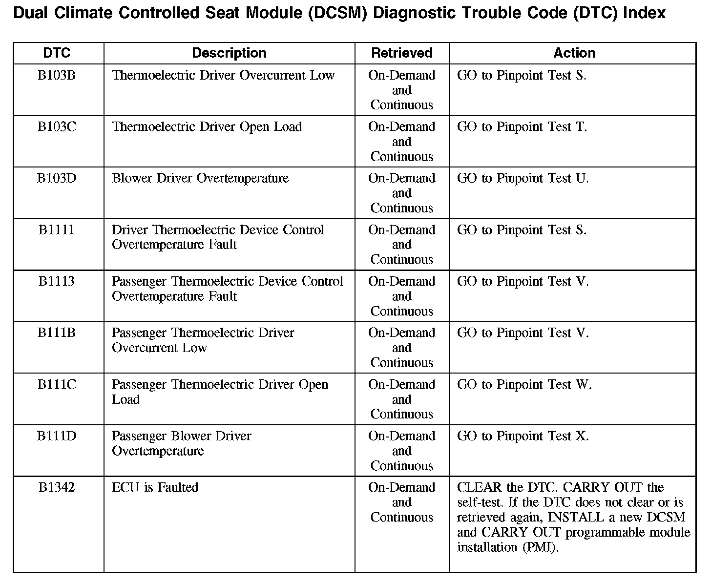 Driver Door Module (DDM) Diagnostic Trouble Code (DTC) Index