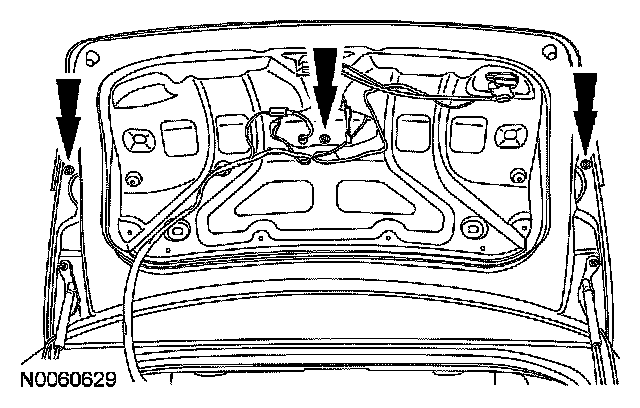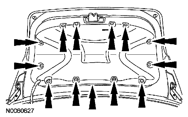 NOTE: There are 2 pin-type retainers on the bottom of the spoiler. When removing the spoiler it is difficult to get the retainers to release. The retainers may break during removal of the spoiler.