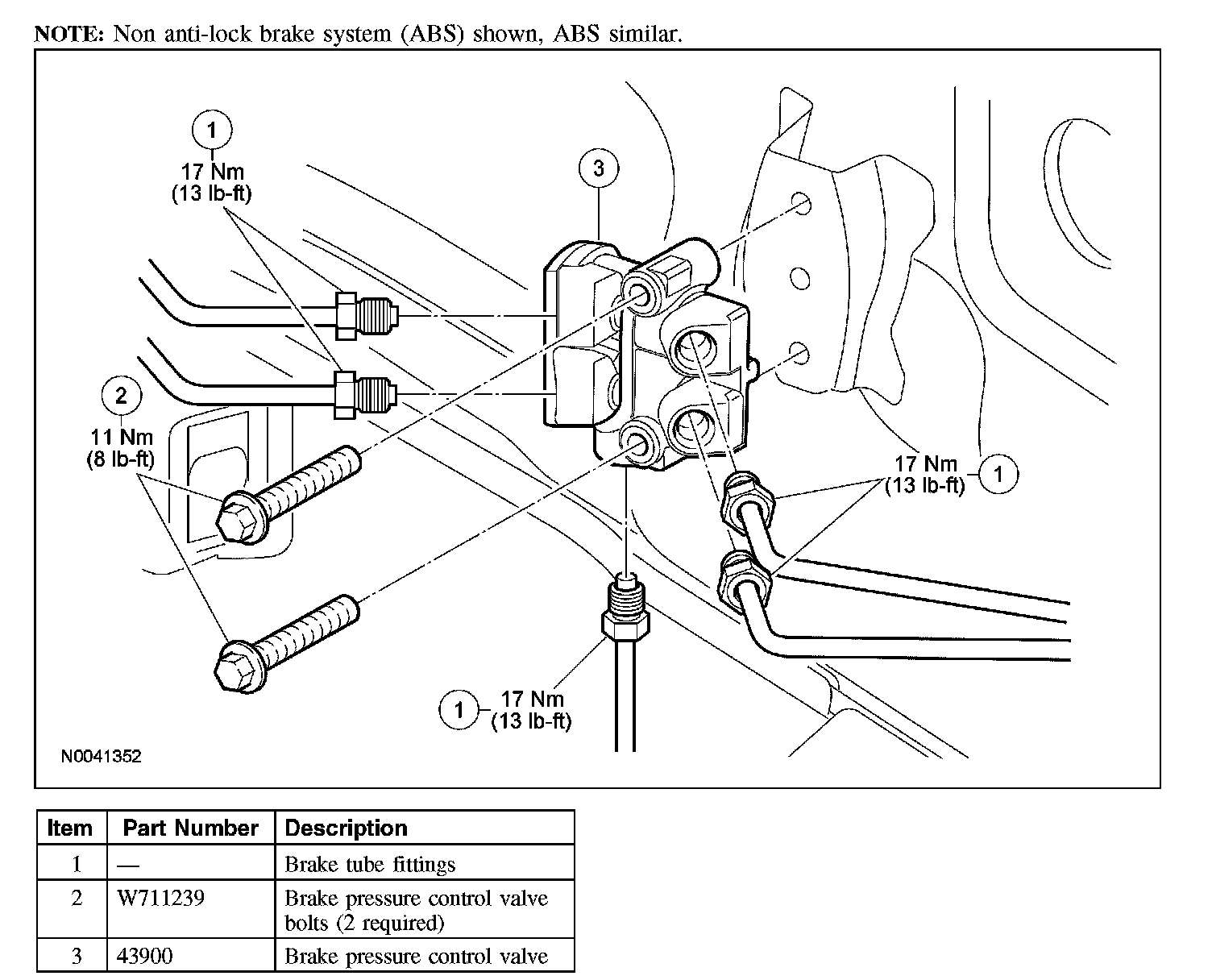 3. Disconnect the brake tube fittings, plug the tubes and the ports on the brake pressure control valve.