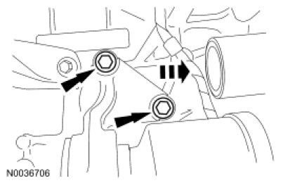 7. Remove the 2 halfshaft carrier bracket bolts and slide the RH halfshaft 12 mm (0.47 in) out of the transaxle.
