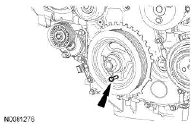9. NOTE: The Crankshaft TDC Timing Peg will contact the crankshaft and prevent it from turning past TDC. However, the crankshaft can still be rotated in the counterclockwise direction. The crankshaft must remain at the TDC position during the crankshaft pulley removal and installation.