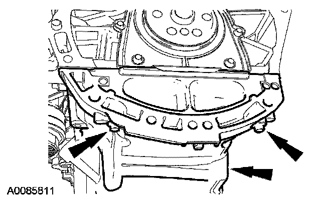 Apply a 2.5 mm (0.09 inch) bead of silicone gasket and sealant to the cylinder head and oil pan joint areas. Apply a 2.5 mm (0.09 inch) bead of silicone gasket and sealant to the front cover.