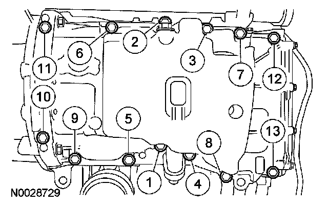 Apply a 2.5 mm (0.09 inch) bead of silicone gasket and sealant to the oil pan.