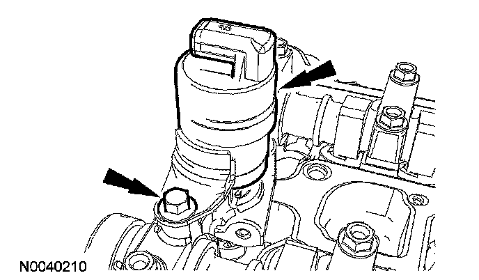 47. Install the variable camshaft timing (VCT) solenoid and the bolt.