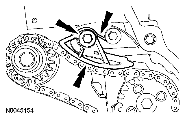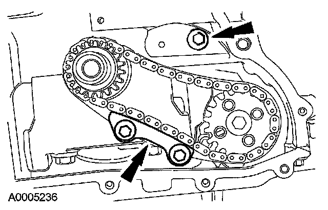50. Install the oil pump drive chain tensioner shoulder bolt.