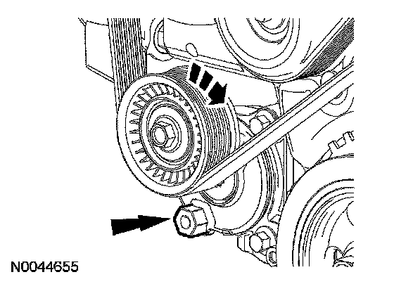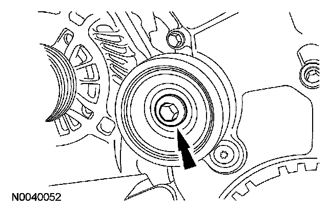 149. Using the hex feature, rotate the accessory drive belt tensioner clockwise and install the accessory drive belt onto the coolant pump pulley.