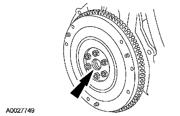 152. Install the flywheel and the 6 bolts. Tighten the 6 bolts in the sequence shown in 3 stages:
