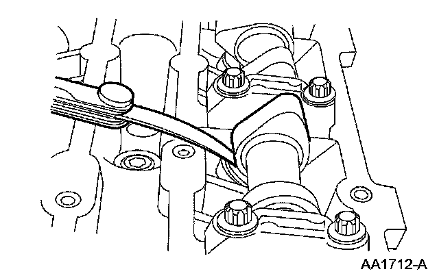 NOTE: Before removing the camshafts, measure the clearance of each valve at base circle, with the lobe pointed away from the tappet. Failure to measure all clearances prior to removing the camshafts will necessitate repeated removal and installation and wasted labor time.