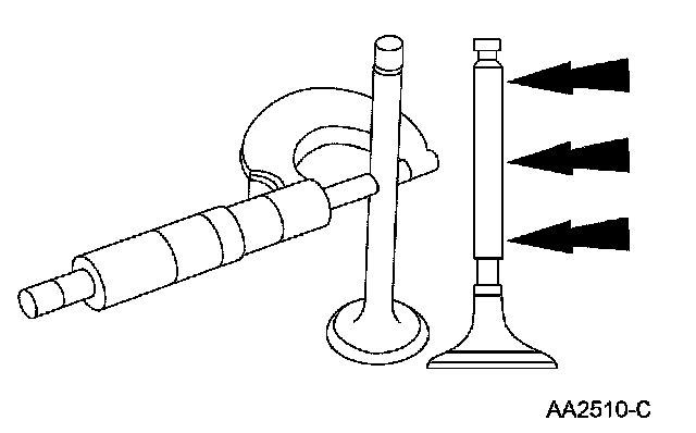 Valve Stem Diameter1. Measure the diameter of each intake and exhaust valve stem at the points shown. Verify the diameter is within specification.