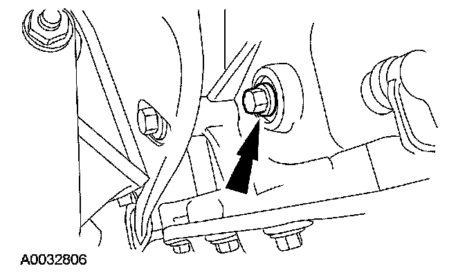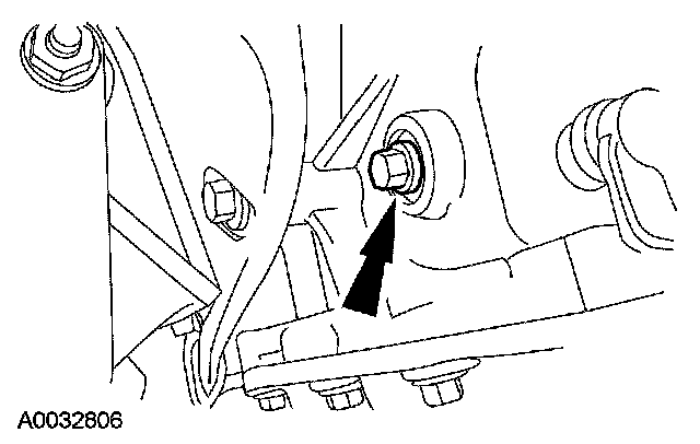 8. Remove the 2 halfshaft carrier bracket bolts and slide the RH halfshaft 12 mm (0.47 inch) out of the transaxle.