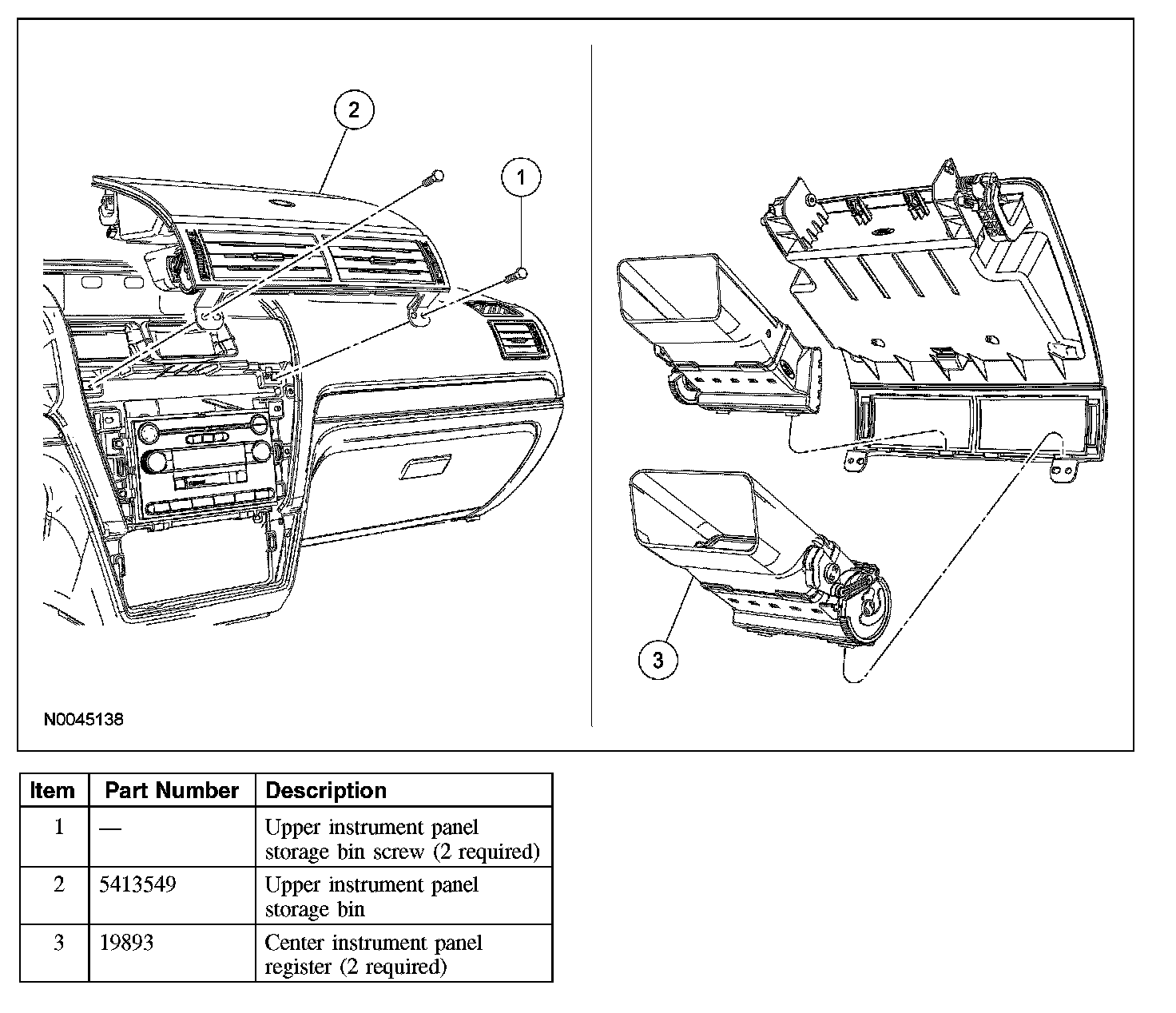 2. Remove the 2 upper instrument panel storage bin screws.