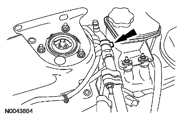 2. Detach the power steering reservoir from the bracket and position the power steering reservoir aside.