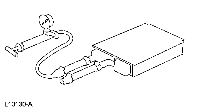 8. If the pressure drops, check the heater hose connections to the core tubes for leaks. If the heater hoses do not leak, remove the heater core from the vehicle and carry out the bench test.