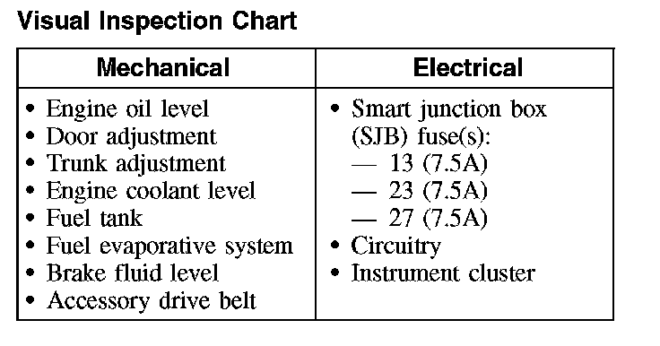 9. If the DTCs retrieved are related to the concern, go to the Instrument Cluster Diagnostic Trouble Code (DTC) Index, the Smart Junction Box (SJB) Diagnostic Trouble Code (DTC) Index, or the Powertrain Control Module (PCM) Diagnostic Trouble Code (DTC) Index. For all other module DTCs, refer to Body Control Systems (Multifunction Electronic Control Module). Instrument Cluster DTC Chart Smart Junction Box (SJB) DTC Chart Powertrain Control Module (PCM) Diagnostic Trouble Code (DTC) Index
