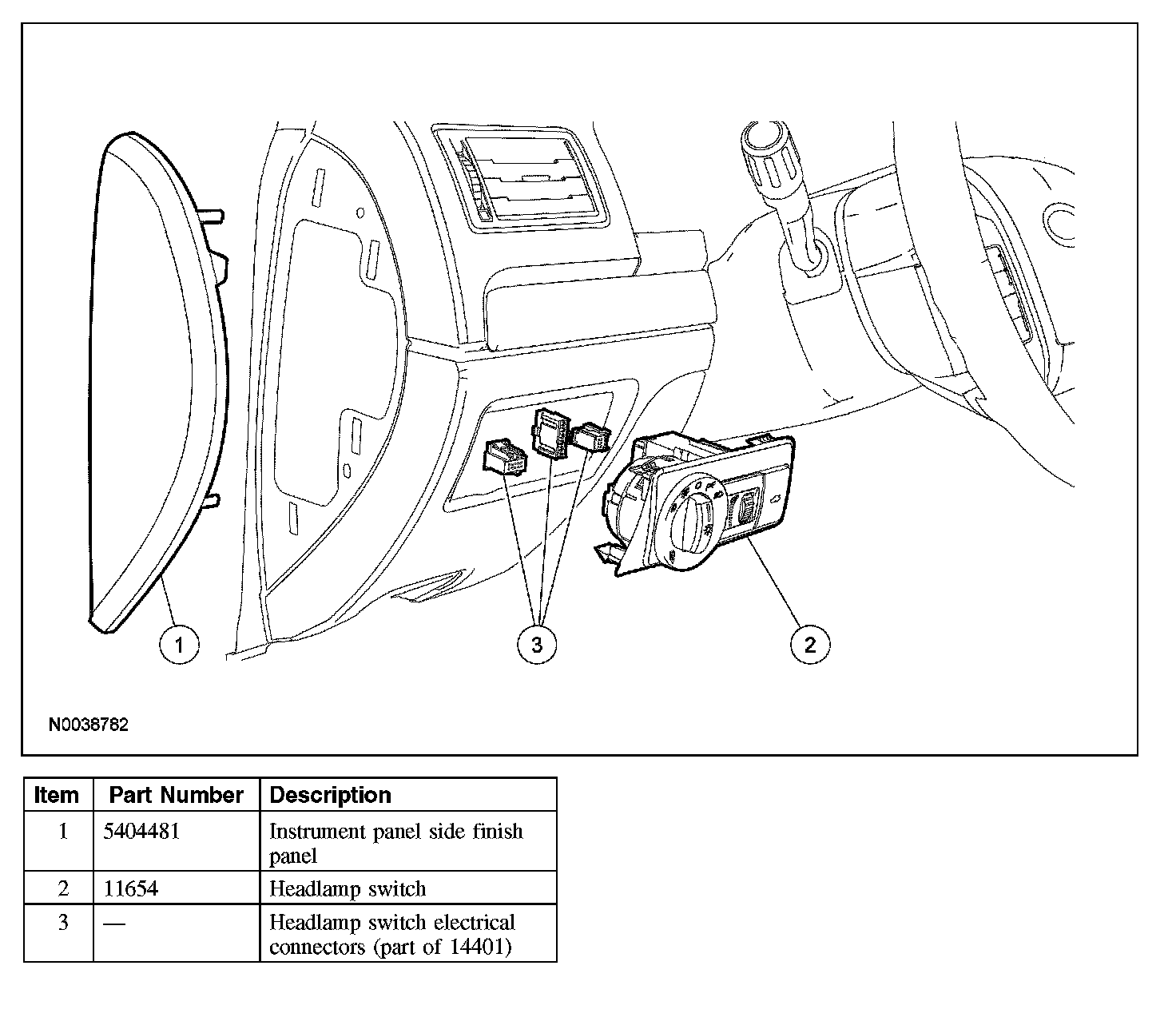 2. NOTE: The headlamp switch is removed by pushing from behind.