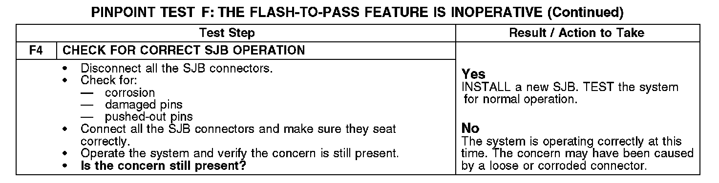PINPOINT TEST F: THE FLASH-TO-PASS FEATURE IS INOPERATIVEF1-F3: