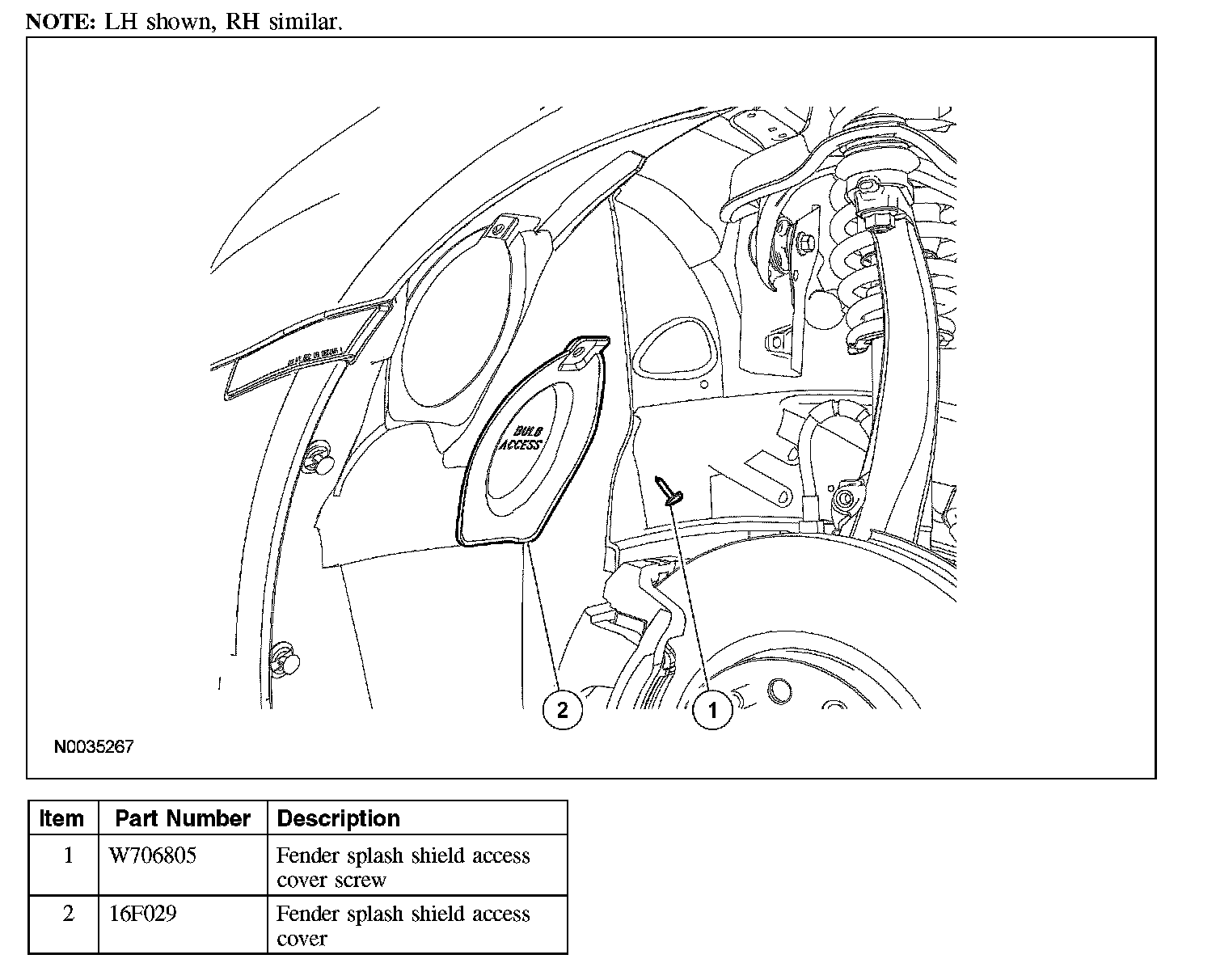 2. Remove the screw and the fender splash shield access cover.