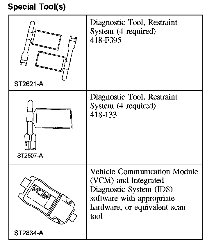 SUPPLEMENTAL RESTRAINT SYSTEM (SRS) DEACTIVATION AND REACTIVATIONSpecial Tool(s):