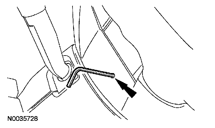Using a 3-mm Allen wrench or a suitable tool through the access hole on the backside of the steering wheel, position the tool against the spring clip and push in, disengaging the clip from the locking pin. With the spring clip disengaged from the locking pin, gently pull back on that side of the driver air bag module to release it from the steering wheel.