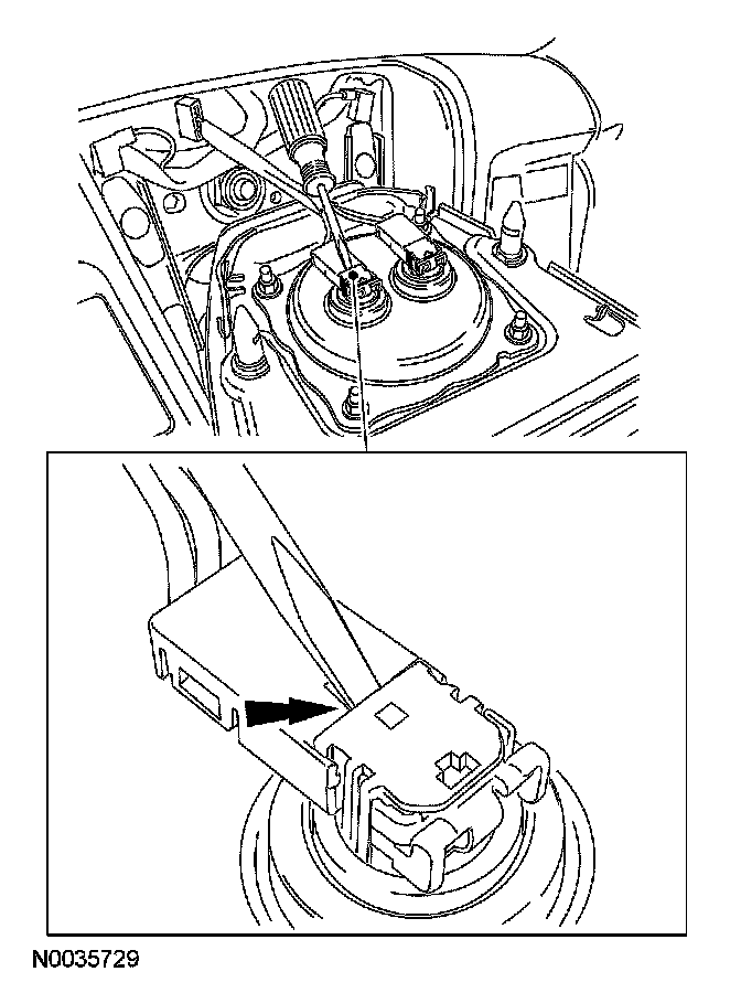 3. Remove the restraint system diagnostic tool from the vehicle harness side of the driver seat side air bag module electrical connector.