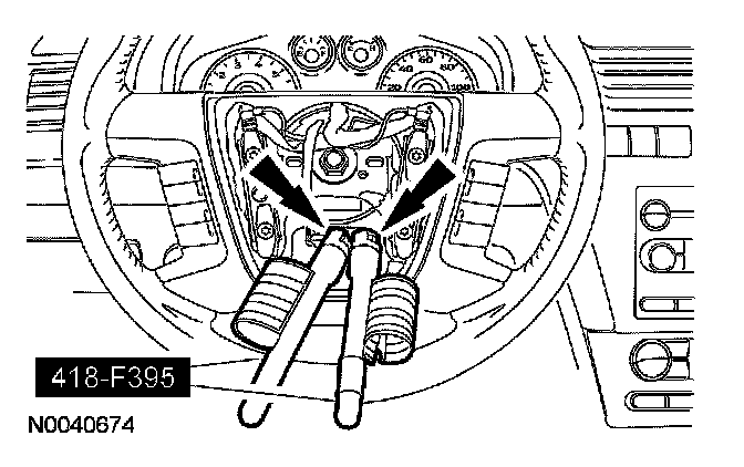10. Attach the restraint system diagnostic tools to the clockspring electrical connectors at the top of the steering column.