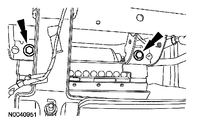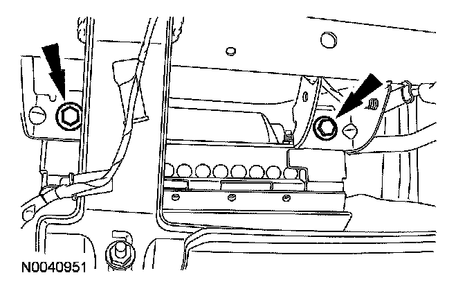 17. Through the glove compartment opening, remove the 2 passenger air bag module bolts.