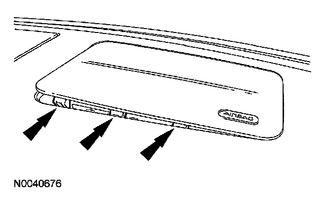 Release the deployment door clips from the instrument panel (I/P) and then remove the passenger air bag module from the I/P.