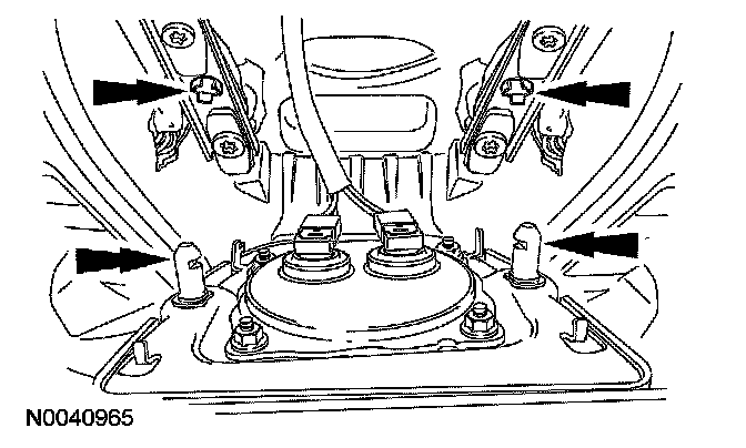 Through the glove compartment opening, release the deployment door clips from the I/P and then remove the passenger air bag module from the I/P.