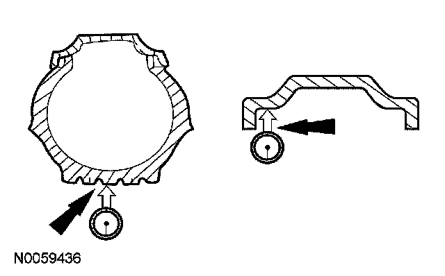 6. NOTE: If there is a vast difference in measurements taken from a wheel and tire assembly checked (on the vehicle) compared to readings taken (off the vehicle), check for excessive bolt circle runout, excessive hub runout or a fitting concern between the hub and wheel.