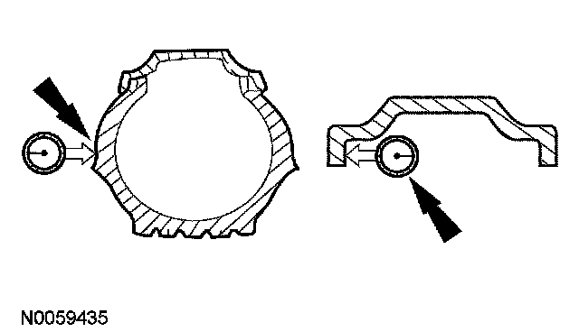 2. NOTE: If there is a vast difference in measurements taken from a wheel and tire assembly checked (on the vehicle) compared to readings taken (off the vehicle), check for excessive bolt circle runout, excessive hub runout or a fitting concern between the hub and wheel.