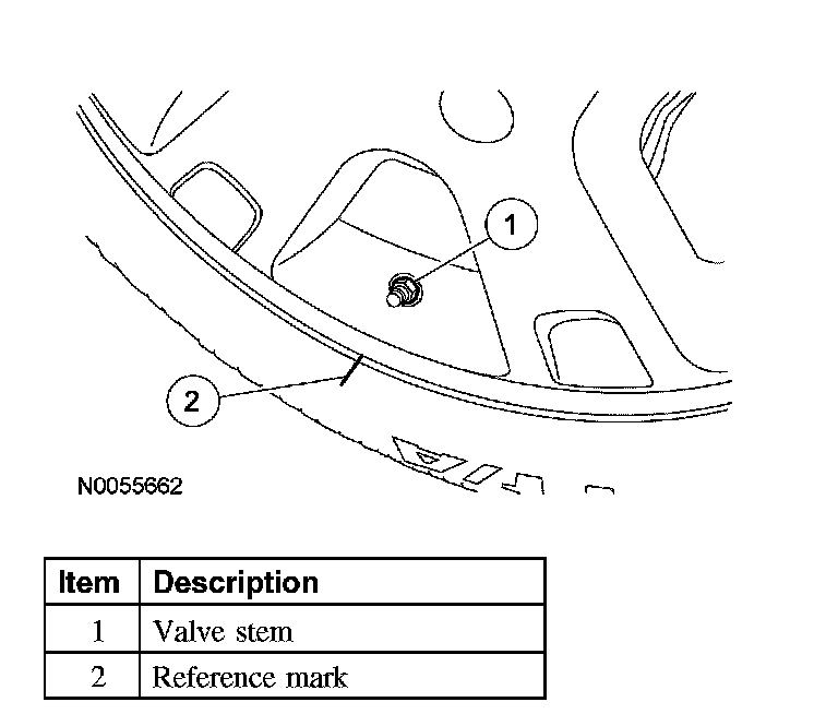 2. Position the wheel and tire assembly on a suitable tire machine and put a reference mark on the tire sidewall at the valve stem position.