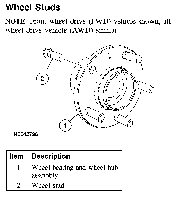 Wheel StudsNOTE: Front wheel drive (FWD) vehicle shown, all wheel drive vehicle (AWD) similar.