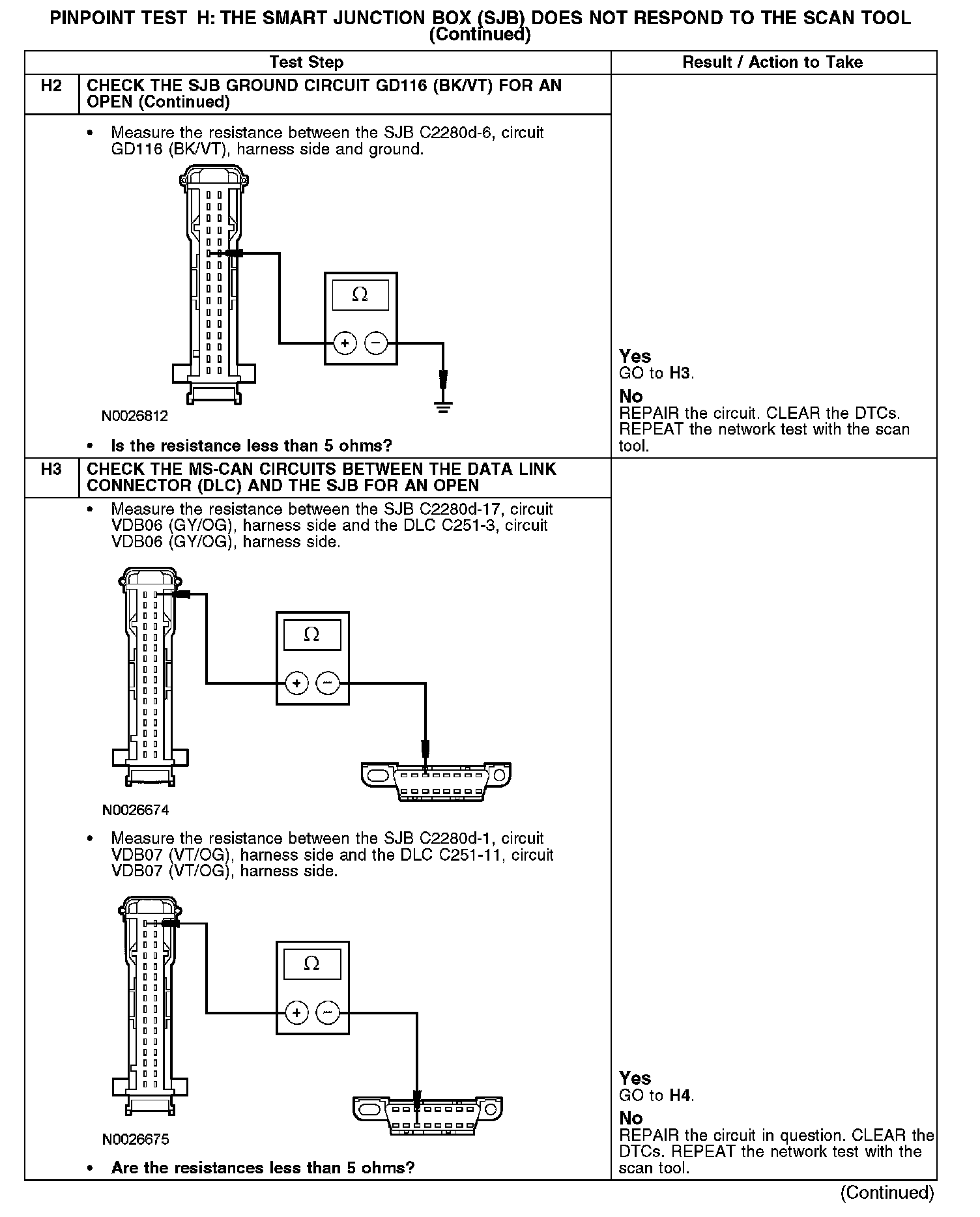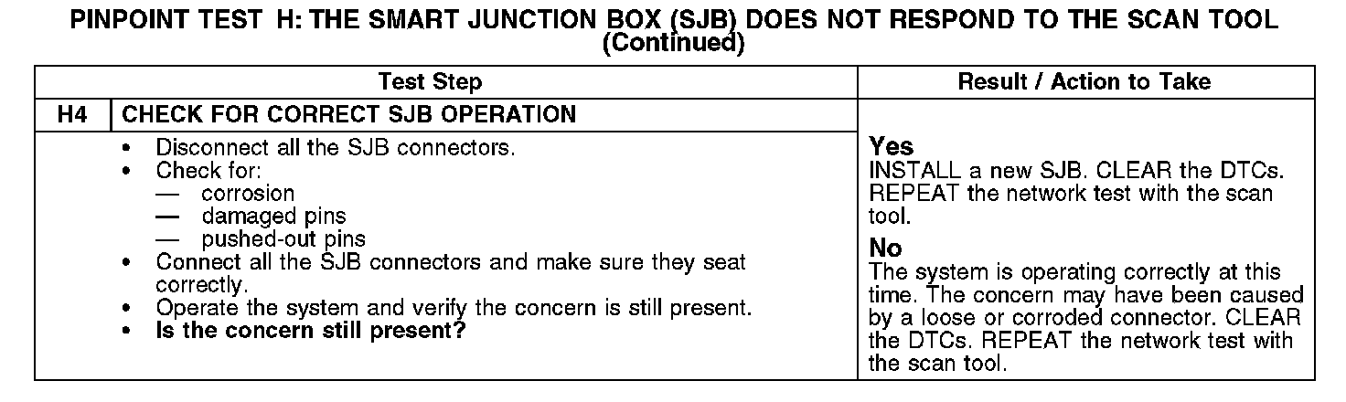 PINPOINT TEST H: THE SMART JUNCTION BOX (SJB) DOES NOT RESPOND TO THE SCAN TOOLH1-H2: