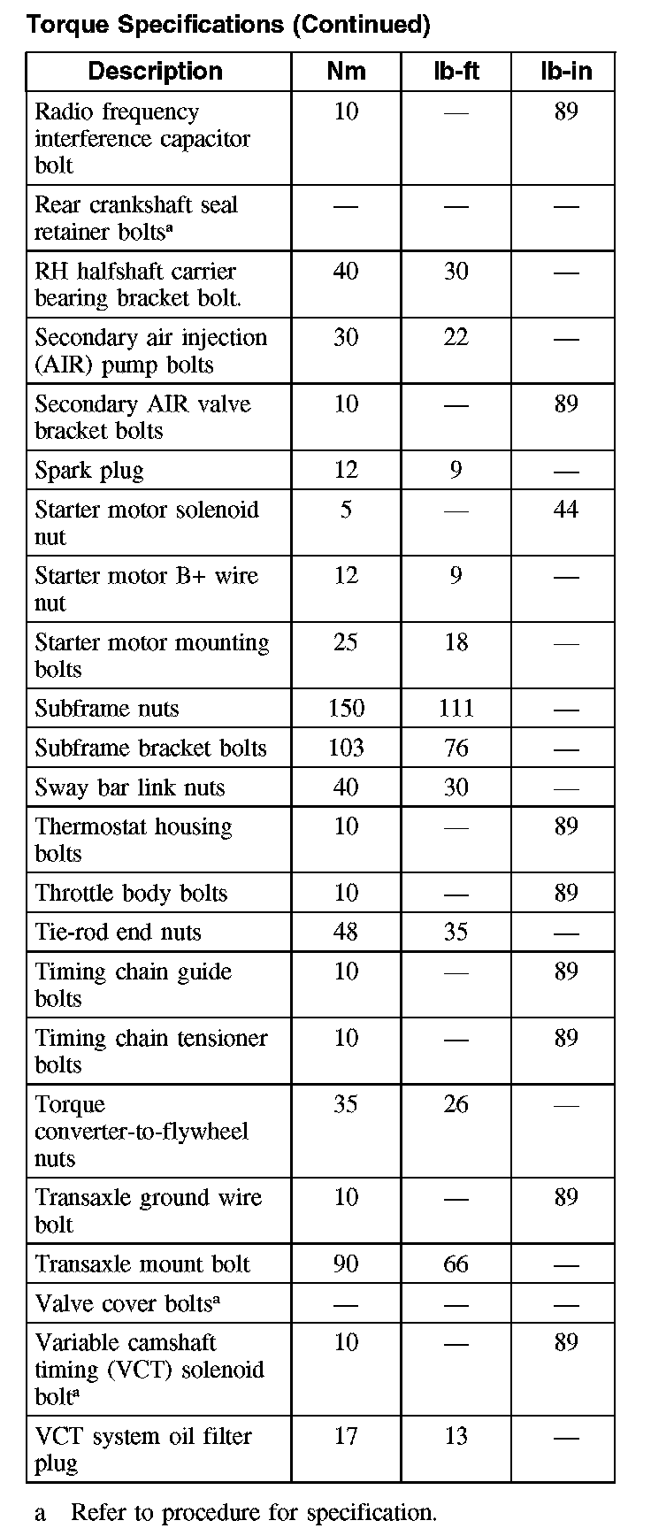 Torque SpecificationsTorque Specifications: