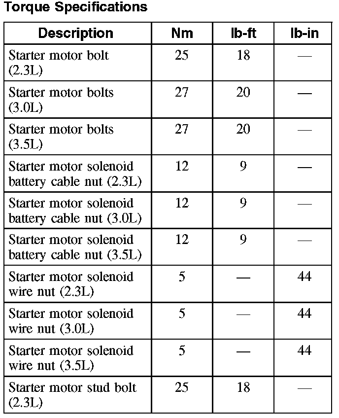 Torque Specifications: