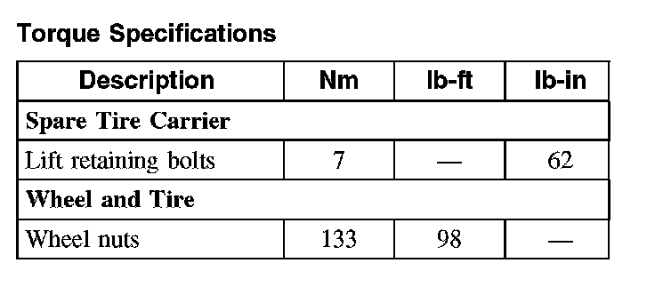 Torque Specifications: