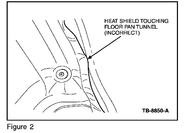 3. Verify that the two (2) wings are not touching the floor pan tunnel (Figure 2). If they are, proceed to Step 4. If not, follow the normal service diagnostic procedures, refer to WSM, Section 100-04.
