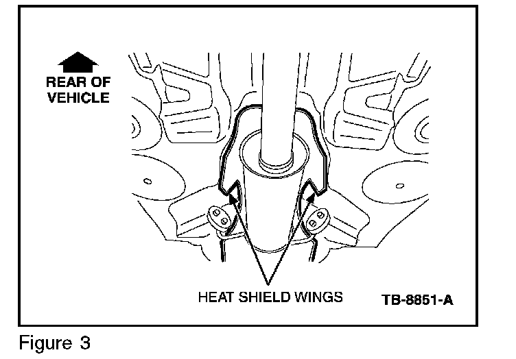 2. Inspect the heat shield wings positioned in the rear portion of the exhaust shield, above the muffler. (Figure 1)