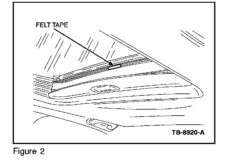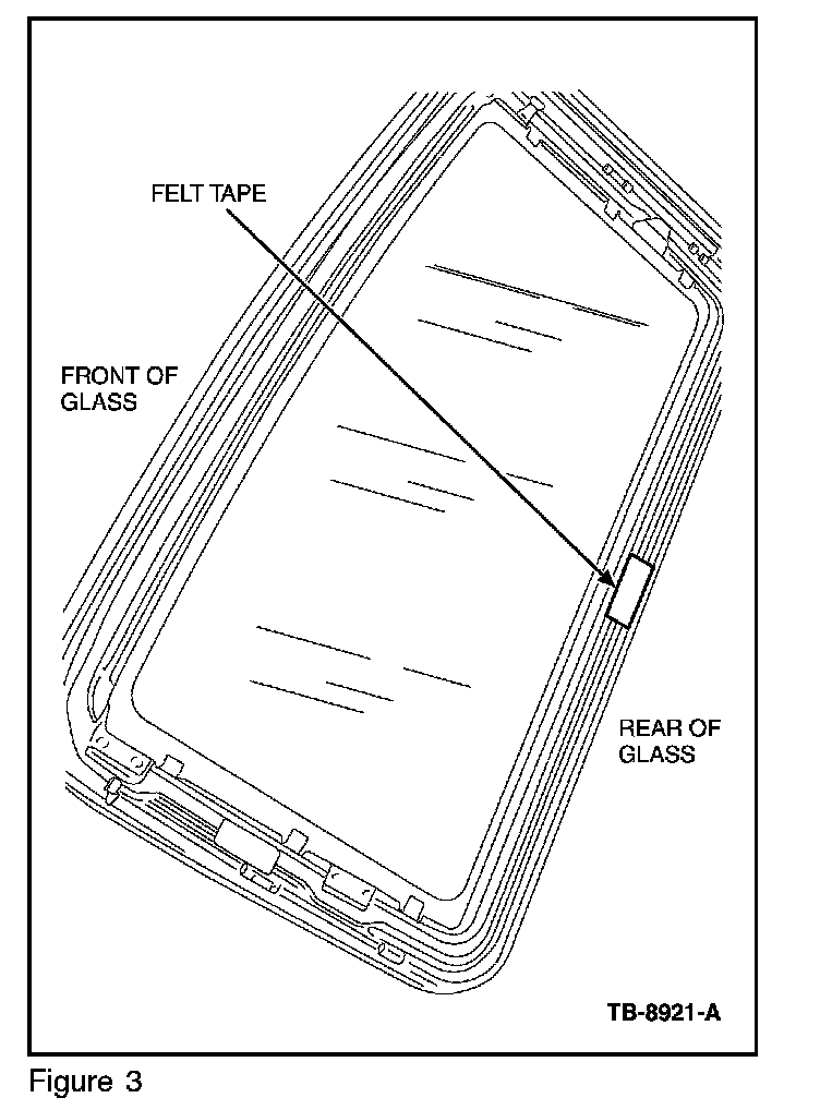 5. On the rear center of the roof opening panel glass, look for a foam felt tape glued to the glass frame. (Figure 3)